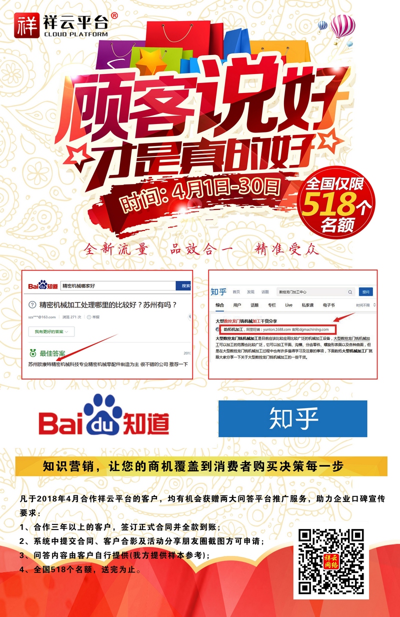 百度知道,知乎。全新流量,品效合一,精準(zhǔn)受眾。現(xiàn)在做祥云營(yíng)銷型網(wǎng)站,就送百度知道、知乎口碑營(yíng)銷! 截止日期:2018-4-28日