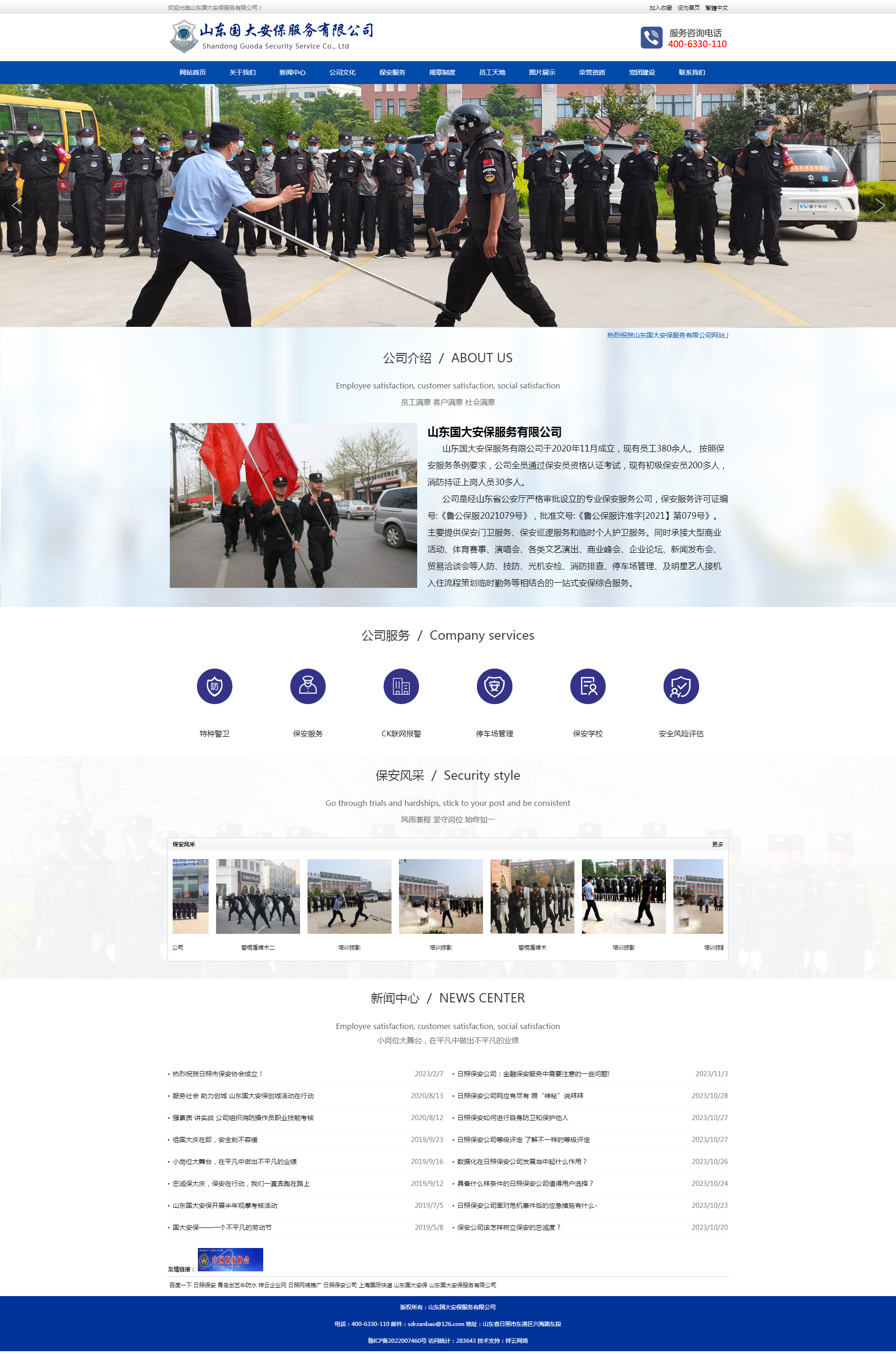山東國(guó)大安保服務(wù)有限公司于2020年11月成立,現(xiàn)有員工380余人。 按照保安服務(wù)條例要求,公司全員通過(guò)保安員資格認(rèn)證考試,現(xiàn)有初級(jí)保安員200多人,消防持證上崗人員30多人。